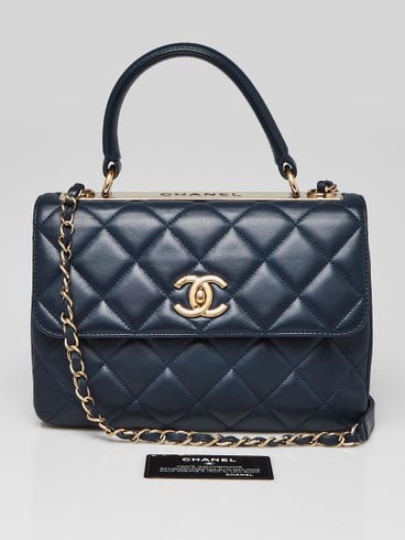 Quilted navy leather bag with radiant gold top handle | buy now for $6,796.
